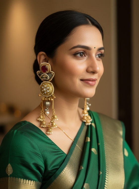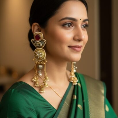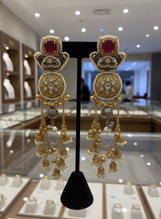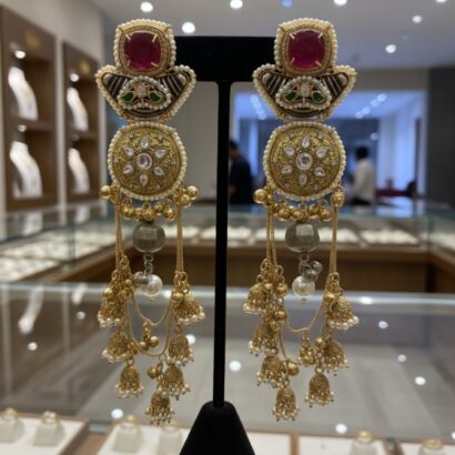 Heirloom glamour in a spectacular long-dangle Jhumka design